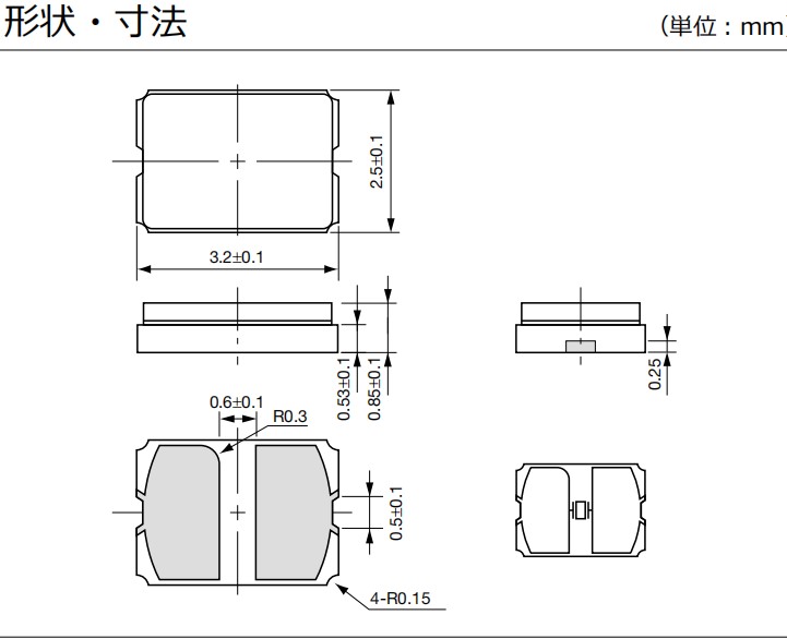 CX3225GA27000D0PTVCC-水晶振動子-高速車載網絡-27MHZ-Kyocera 尺寸圖