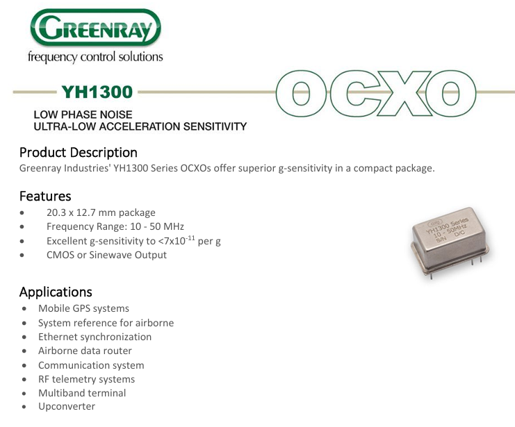 Greenray科技之光,閃耀于晶振之間Greenray插件YH1300恒溫晶振OCXO的輸出
